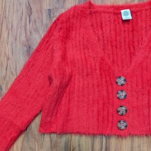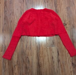 Excellent condition Urban Outfitters Cropped Cardigan. With an eyelash material in scarlet hot pink and tortoise shell buttons, this cardigan is the perfect statement piece to add to your wardrobe. V-Neck & long sleeve fit. This sweater is ribbed all over and ultra soft.