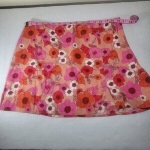 Urban Outfitters Floral Linen Blend Mini Skirt Lined Size L Red Pink Orange
