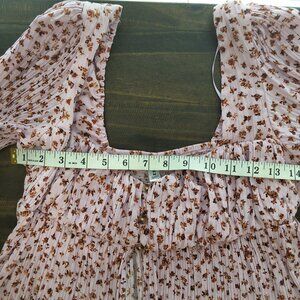 Urban Outfitters Floral Milkmaid Babydoll Top Poet Sleeves Tie Cuff Sz M