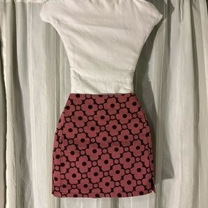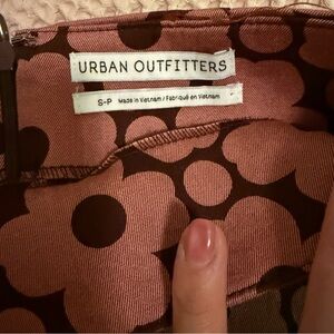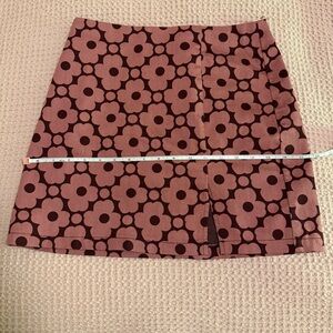 Urban Outfitters skirt, floral mini skirt, pink brown skirt, mod print skirt, retro 60s style, vintage inspired, cotton blend mini, Y2K outfit, fall fashion, A-line skirt, trendy skirt, minimalist closet, preppy aesthetic, cottagecore, coquette style