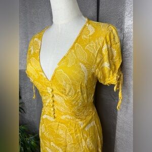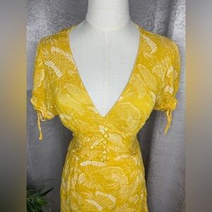 Urban Outfitters Floral Print V-Neck Mini Dress Yellow Women’s Sz M