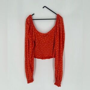 Urban Outfitters Floral Puff Balloon Long Sleeve Smocked Front Tie Crop Blouse