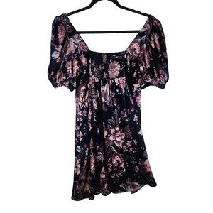 Urban Outfitters Penelope Floral Puff Sleeve Dress M Polyester Babydoll Whimsygoth Velvet