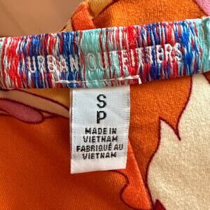 Urban Outfitters Floral Ruched Ruffle Mini Dress Orange Yellow Groovy Y2K Retro
