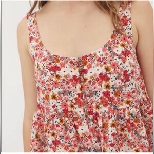 Urban Outfitters Floral Tiered Babydoll Romper Red Pink Orange Boho Festival S