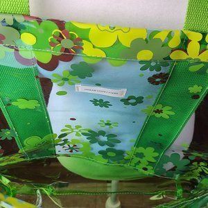 Covered in fluorescent floral design with a sturdy base, this tall tote bag is built for life’s daily activities. Fitted with two reinforced webbing haul handles and an exterior pocket. Perfect for that flower child inside of you!