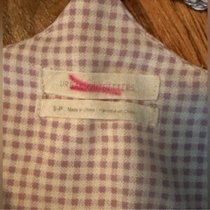 lavender gingham wrap style top. Ties around the waist and also has adjustable straps. Box B