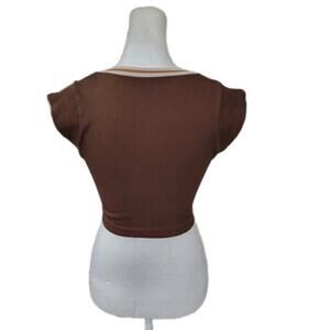 Urban Outfitters Go For Gold Seamless Ribbed Crop Top Women's XS Brown Y2K