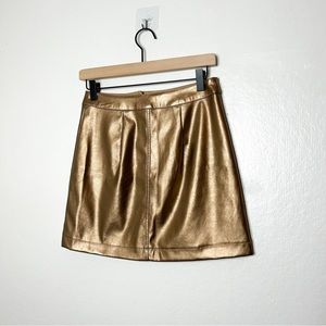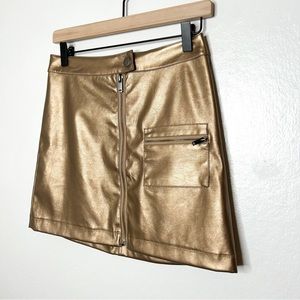 Urban Outfitters Gold Shiny Metallic Zip Front Mini Skirt Small S