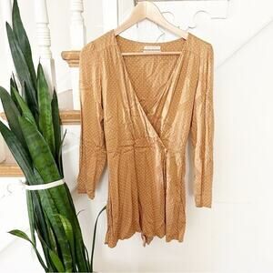Urban Outfitters Gold White Polka-Dot Long Sleeve Faux Wrap Romper Size S