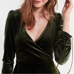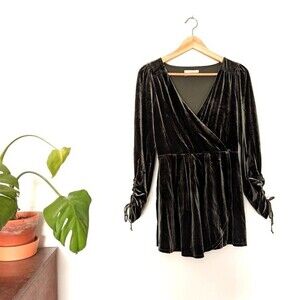Urban Outfitters Goldmine Olive Green Velvet Romper