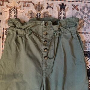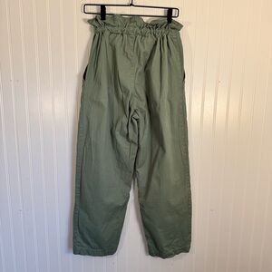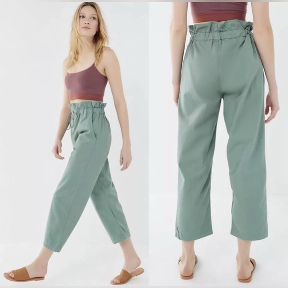 Stylish green ankle pants. Features a high waist and relaxed fit. Perfect for casual wear.