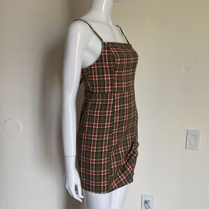 Urban Outfitters Green & Orange Monica Plaid Square Neck Mini Dress Size Small