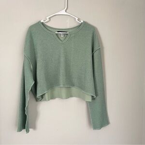 Urban Outfitters Green Parker Notched Long Sleeve Top Size Medium