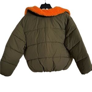 Urban Outfitters Green Puffer Jacket Duckie Faux Shearling Collar Coat NWOT