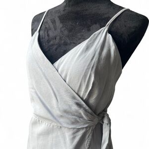 Urban Outfitters Grey Linen Blend Wrap Dress w/ Spaghetti Straps - Size Medium