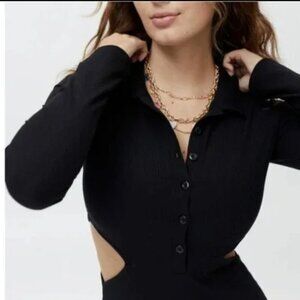Urban Outfitters Gwen Cut Out Collared Button Up Black Mini Dress S NWT