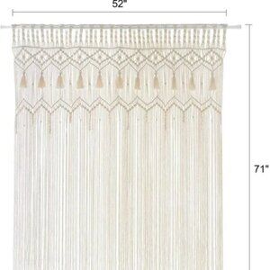 Macrame wall hanging that adds a unique, boho-inspired touch to any space. Hang it on your wall as a decorative piece or in front of a window. Add a refreshing charm to your window and let in some beautiful diffused light, yet reduce energy usage and provide privacy protection. Note: There are gaps between macrame ropes, so it does Not block light like blackout curtains.