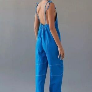 Adorable Urban Outfitters Harley Overall Jumpsuit. Tie shoulder. Front pockets. Lightweight linen blend. Open back. Wide leg. Brand tag unstitched on one side.
