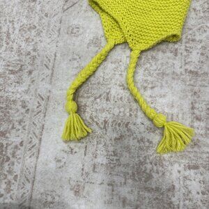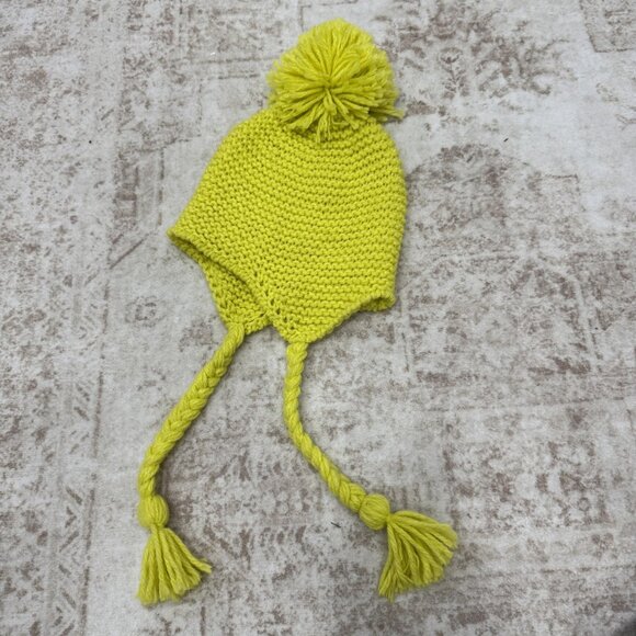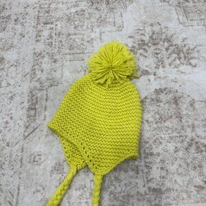 Urban Outfitters Hat Beanie Fitted Womens One Size Yellow Knit Pom Pom Ear Flap
