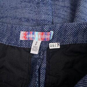 Tags: Herringbone pants, blue pants, wide-leg pants, Urban Outfitters, cotton pants, women's trousers, casual pants, blue herringbone, relaxed fit, side pockets, back pockets, zipper closure, small size