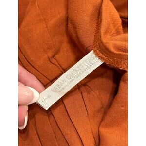 This burnt orange dress is perfect to wear to any fall event or a football game. Pair with mules for a laid back boho look, or boots for an outfit perfect to wear to a country western show. Bow tie back detail.