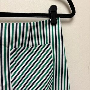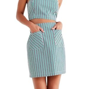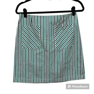 Adorable Urban Outfitters High Rise Striped Mini Skirt. Slim cut fit. Pouch pockets at hips. Hidden zipper back. Material tag cut out. Rayon nylon spandex blend.