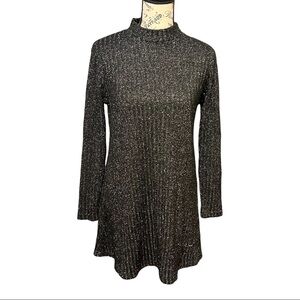 Urban Outfitters Black Metallic Ribbed High Neck Skater Dress