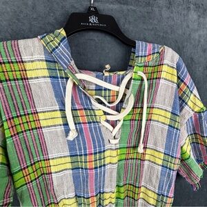 Urban Outfitters Hooded Linen Blend Plaid Corset style V-neck Romper Sz S