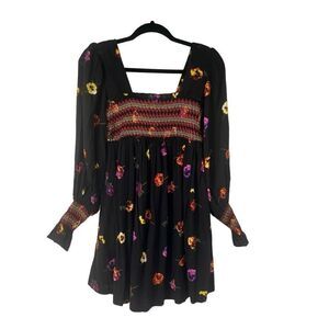 Urban Outfitters Isobel Smocked Frock Black Floral Long Sleeve Dress S Women’s
