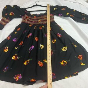 Urban Outfitters Isobel Smocked Mini Frock Black Floral Long Sleeve Dress