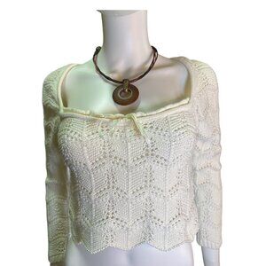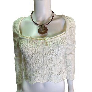 Urban Outfitters Ivory Knit Cropped Sweater Top Med NWT Lace Knit Fall Winter