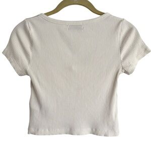 Urban Outfitters Ivory Ribbed Button Front Cropped Top Size Small Petite