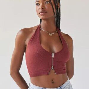 Urban Outfitters Jackie Seamless Zip-Up Halter Bra