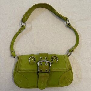 color: lime green | 100% cow suede leather | compact shoulder bag