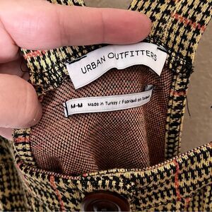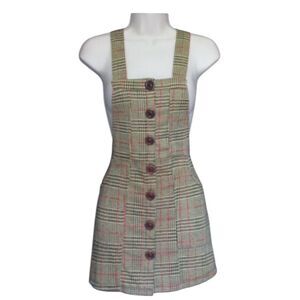 Urban Outfitters Joey Tan/Gold, Black, Red Plaid Button-Down Skirtall Overall Dress Size Medium