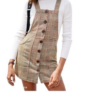 Urban Outfitters Joey Plaid Button-Down Skirtall Overall Dress Size Medium