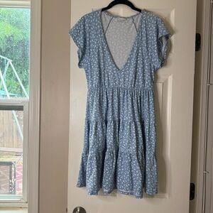 Urban Outfitters Julia Ruffle Mini Dress, size S Blue Floral Women's Dress