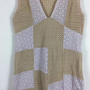 Urban Outfitters Kay Cream Tan Patchwork 70s Eyelet Shift Mini Dress Medium