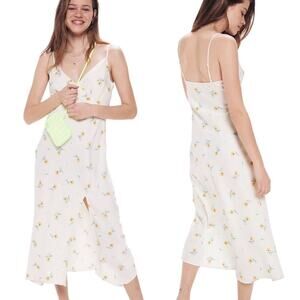 Urban Outfitters Kelly Surplice Yellow Floral Midi Dress Woman’s Size Small