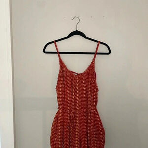 Urban Outfitters Kiari Red Wide Legged Strappy Bohemian Jumpsuit
