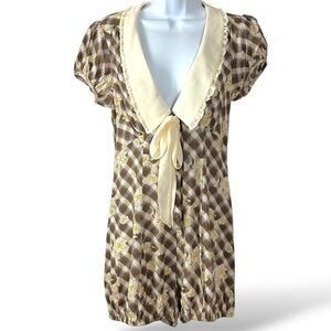 Urban Outfitters Kimchi Blue Bloomer Romper Plaid Ethereal Bow Dainty Size Small