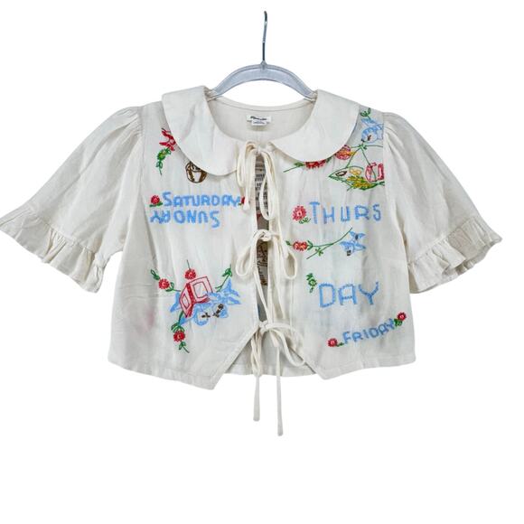 Urban Outfitters Kimchi Blue Embroidered Linen Cottagecore Crop Peter PanTop XS
