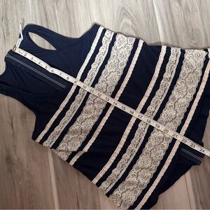 Navy Kimchi Blue women’s small zip back tank top blouse with lacey front. Good preloved condition. See all pics for condition and measurements.
