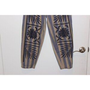 Urban Outfitters pants combine bold stripes with intricate black embroidery, showcasing a unique and fashionable design. Ideal for adding an artistic flair to any wardrobe, they're crafted for style-conscious individuals who appreciate distinctive clothing pieces. Durable materials ensure long-lasting wear.