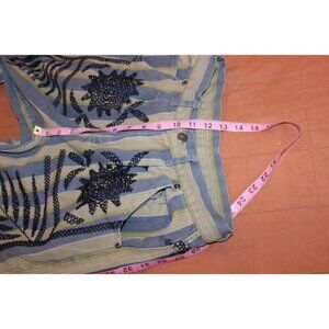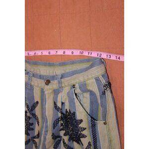 Urban Outfitters Kimichi Blue Striped Emboidered Pleasted Cropped Jeans size 8