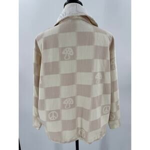 Urban Outfitters Kimono Jacket Cream Checked Wrap Coat Mushroom Peace XS S M