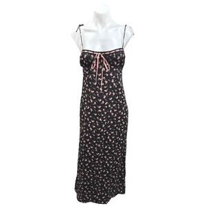 Urban Outfitters Black Floral Kiss The Sky Slit Bustier Cami Midi Slip Dress XS