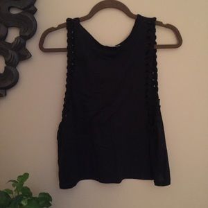 Soft jersey material, braided sides, pretty open on the sides. Worn a few times but perfect condition.
