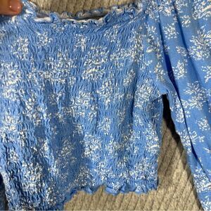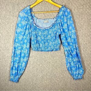 Urban Outfitters L Crop Top Long Sleeve Blue with white flowers